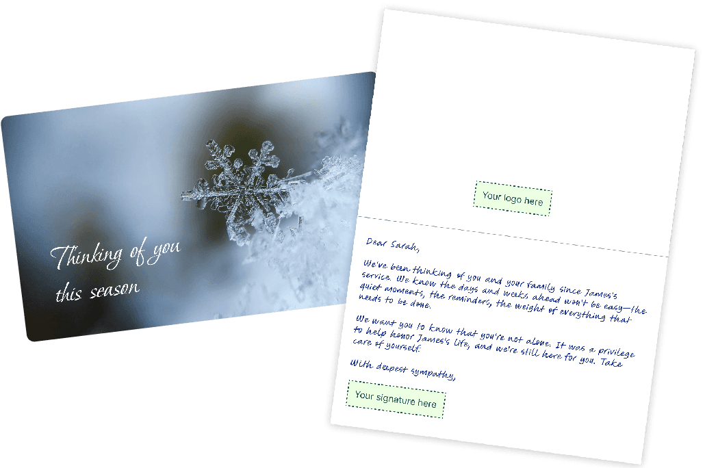 A card arrives during the season when grief hits hardest. Your name, in their home, at the right moment.